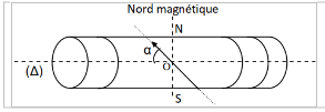 L'axe du solénoïde est placé perpendiculairement au plan du méridien magnétique.