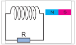 Une bobine fermée sur un résistor de résistance $R$ est placée dans le champ magnétique d'un aimant comme dans la figure ci-dessous