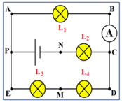 7. Déterminer les valeurs des intensités qui traversent les lampes $L_{2}$, $L_{3}$ et $L_{4}$