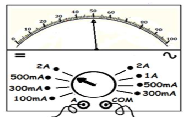 3. On désire mesurer un courant de $300\,mA$ à l'aide d'un ampèremètre dont le cadran comporte $100$ divisions.
