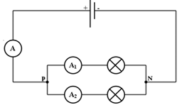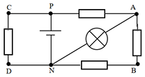 On considère le circuit de la figure ci-contre, Sachant que la quantité $Q$ qui traverse la section du fil $AP$ pendant une minute est $Q=30C.$