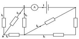 Soit le circuit de la figure ci-contre où $A_{1}$, $A_{2}$, $A_{3}$, $A_{4}$, $A_{5}$ et $A_{6}$ sont des ampèremètres.
