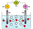 3. Sur la figure, indiquer par une flèche le sens de déplacement de chacun des $8$ ions représentés par des cercles dans la solution électrolytique après avoir précisé le signe de la charge de chaque ion.