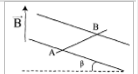 Un champ magnétique uniforme horizontal de valeur $B=10^{-2}T$ règne sur une hauteur $h=5\,cm$
