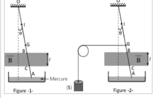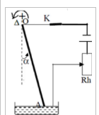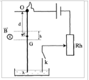 Une tige conducteur en cuivre rigide et homogène, de masse $m=8\,g$ de longueur $L=25\,cm$, est suspendu par son extrémité supérieure en $O$ sa partie inférieure plonge dans une cuve contenant du mercure.