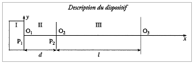 Une fente centrée sur $O_{2}$ de largeur $L$ dans le plan de la figure permet de choisir la largeur du faisceau incident.