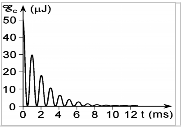 3. Le document suivant donne l'évolution de l'énergie $E_{C}(t)$ emmagasinée dans le condensateur au cours du temps.