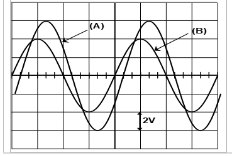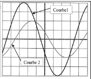 On observe sur l'oscilloscope les oscillogrammes $(A)$ et $(B)$ représentés sur la figure ci-après. Un ampèremètre branché en série dans le montage indique la valeur $I=\sqrt{2}\cdot 10^{-2}A$