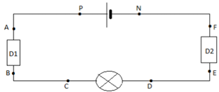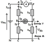 Les mesures effectuées sur ce montage ont données les résultats suivants : $U_{PN}=12\,V$ ; $U_{AB}=3.0V$ ; $U_{CD}=3.5\,V$