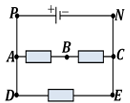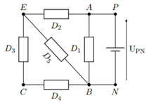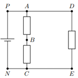 Dans le montage ci-dessous,$U_{PN}=12\.,V$ et les quatre dipôles entre les points $A$ et $D$ sont identiques.