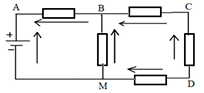 2. Établir les relations entre les tensions pour les mailles $(M\,A\,B\,M)$ ; $(M,B,C,D,M)$