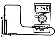 Anass mesure la tension aux bornes d'une pile par un voltmètre numérique.